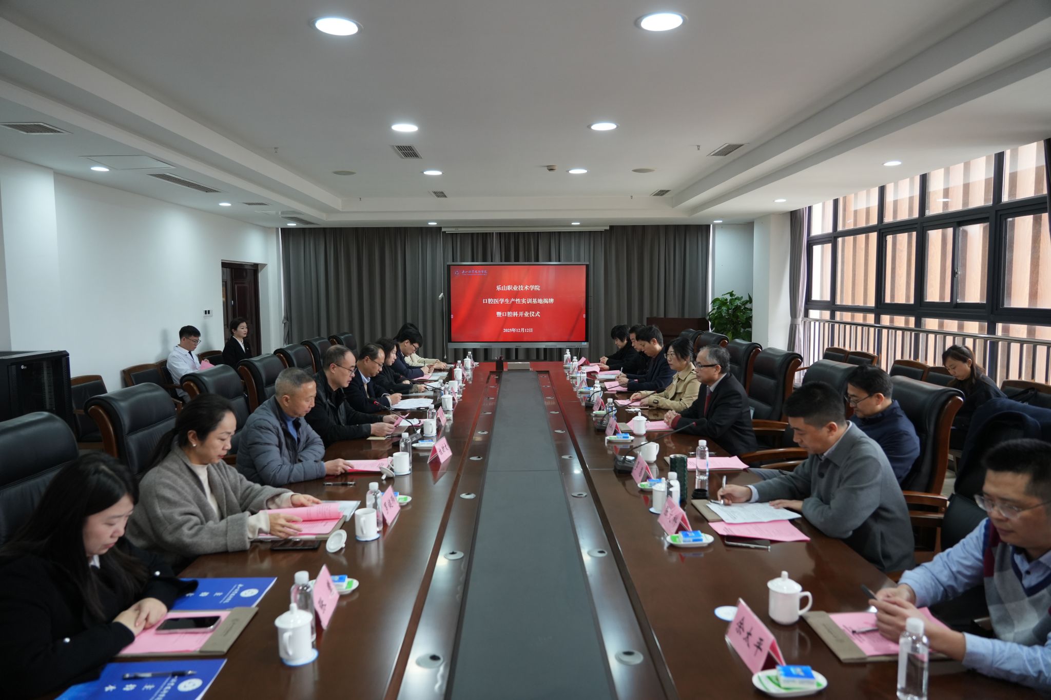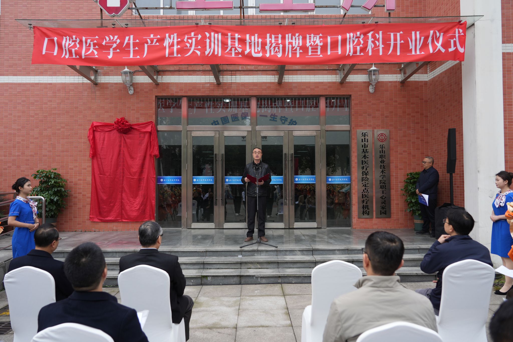 12月12日上午10 点,乐山职业技术学院口腔医学生产性实训基地揭牌暨口腔科开业仪式在实训基地隆重举行。北京大学口腔医学院魏世成教授、四川大学华西口腔医院罗恩教授、西南医科大学附属口腔医院范丽苑教授及院校合作单位代表和学校校长刘忠,党委副书记、工会主席张佳,党委委员、副校长张学河及相关部门负责人、师生代表齐聚一堂,共同见证这一重要时刻。