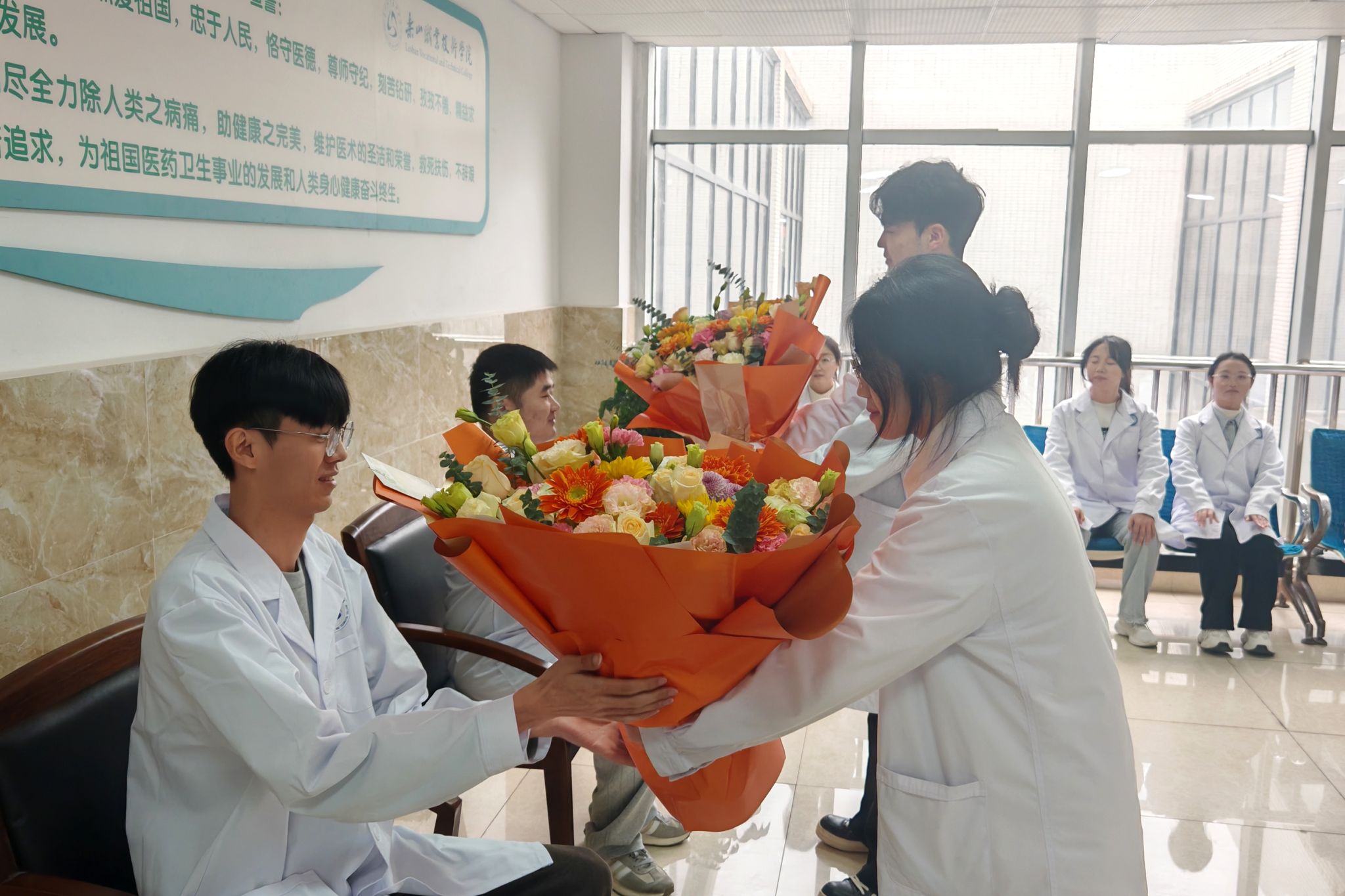 随后在实训基地三楼大厅举行了庄重的拜师仪式,仪式上介绍了担任师父的口腔医学教研室老师,学生们向师父行拜师礼,正式建立师徒关系。学生代表与师父代表分别发言,表达了勤学苦练、传承技艺的决心与倾囊相授、助力成长的责任。