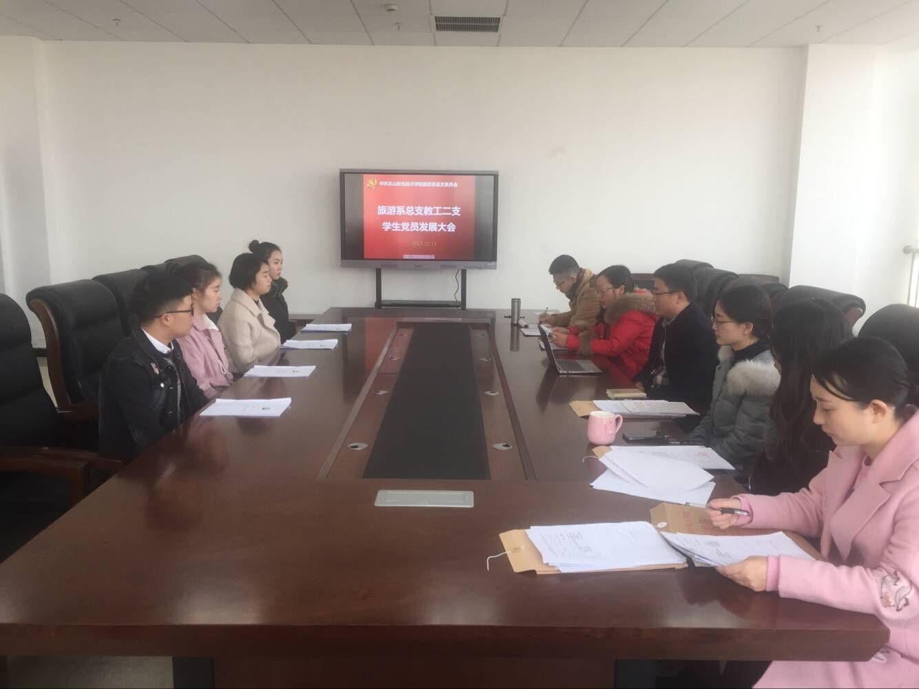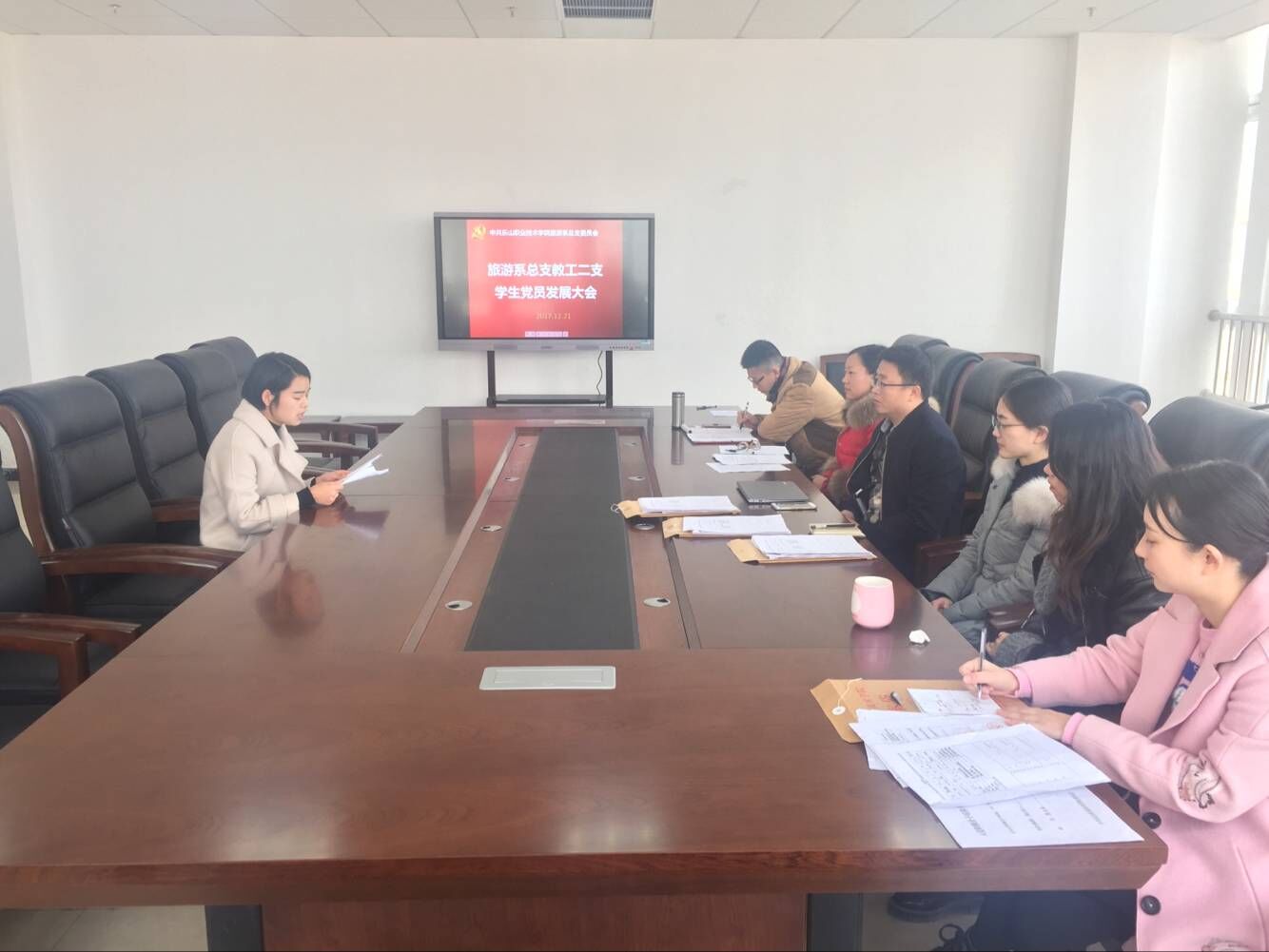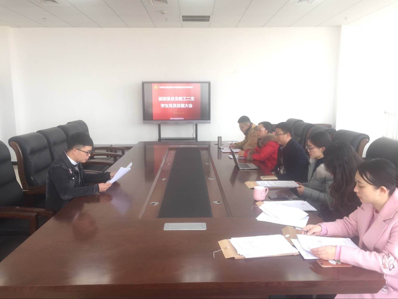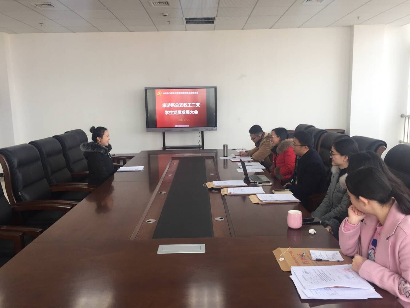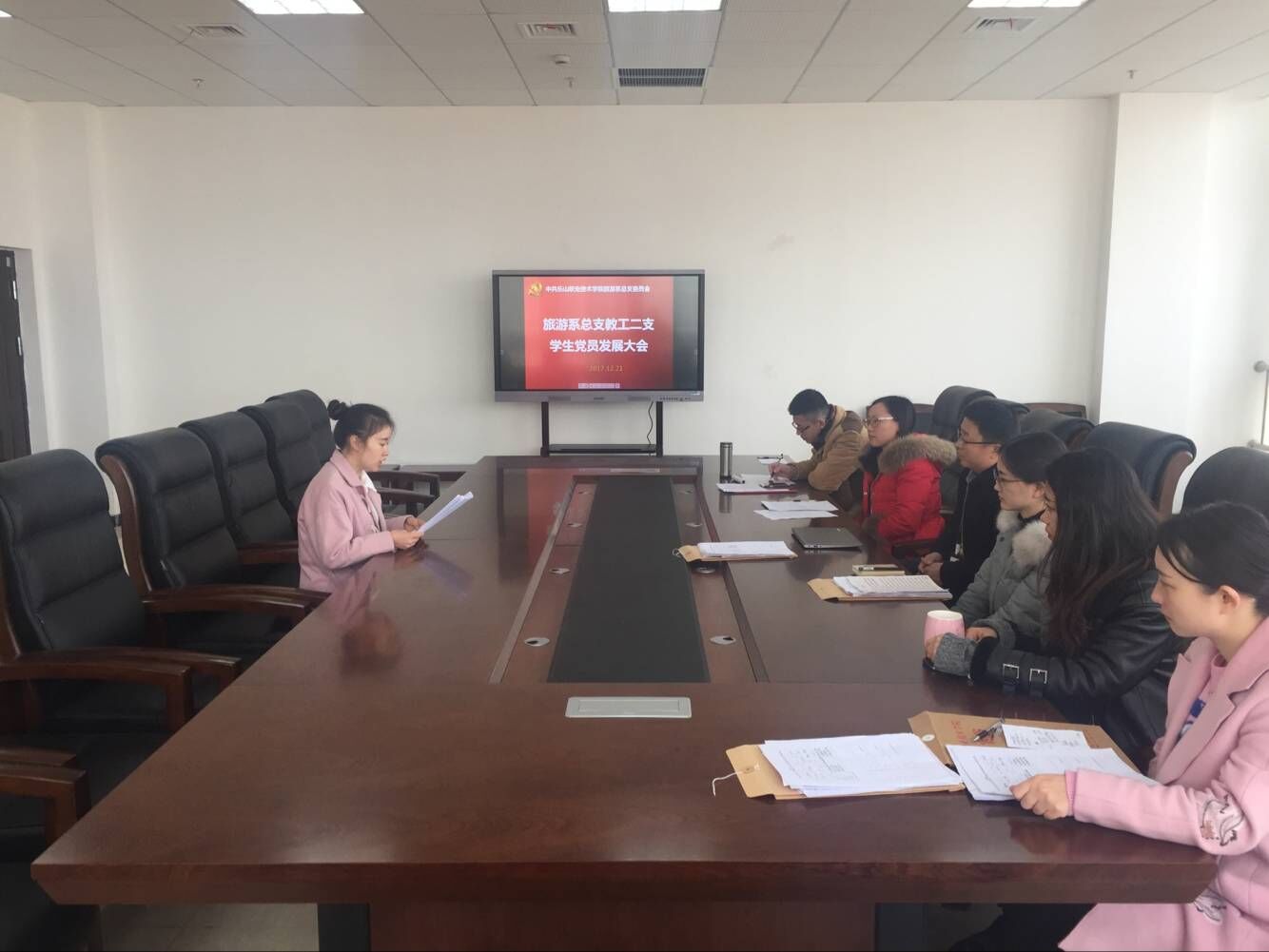 2017年12月21日13点,旅游系教工二支部召开学生党员发展大会,大会应到党员同志9人,实到7人,发展对象陈磊、周成梅、晏泽宏、廖容梅到会,符合大会召开要求,大会由二支部书记彭媛媛主持。