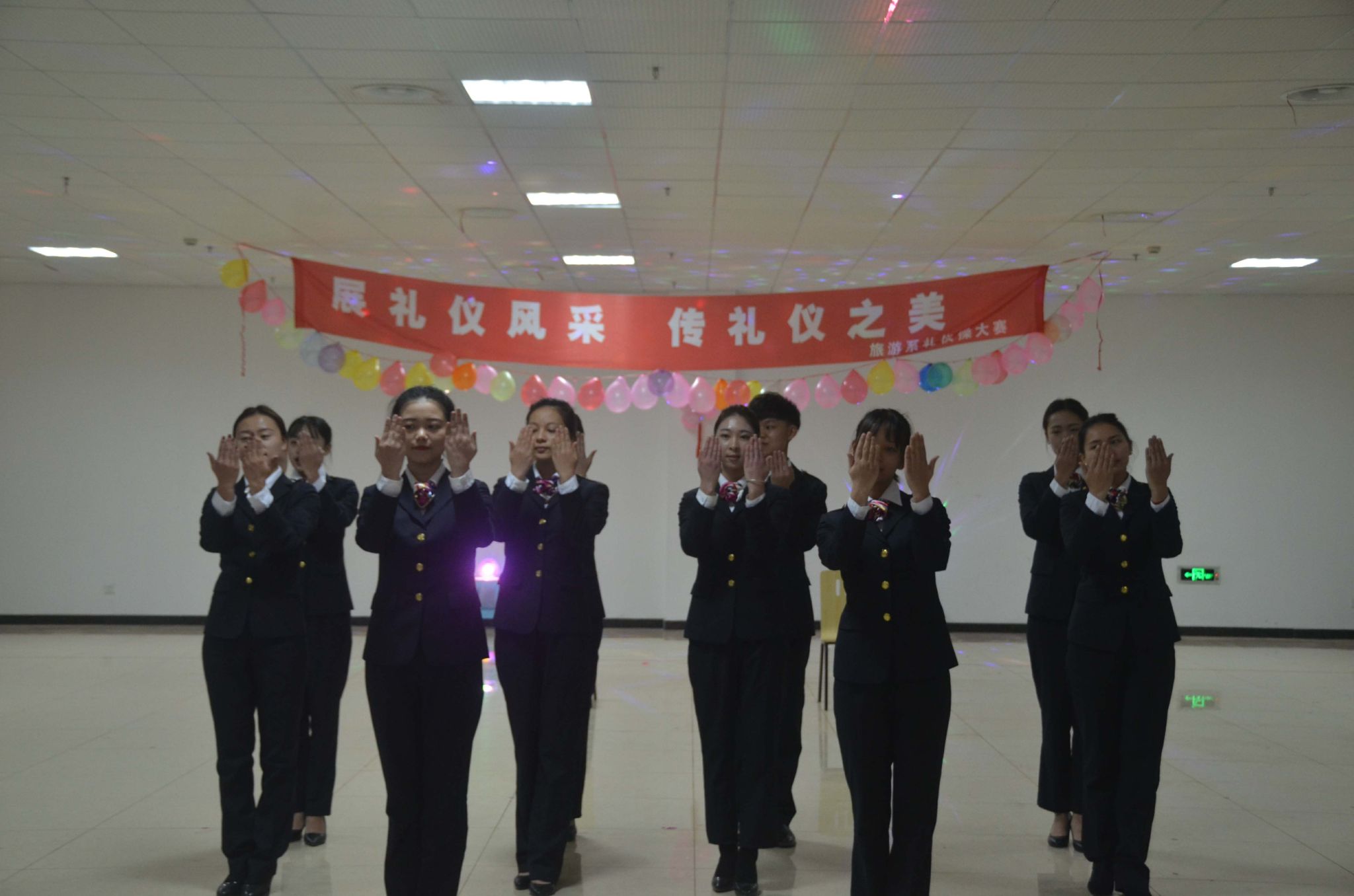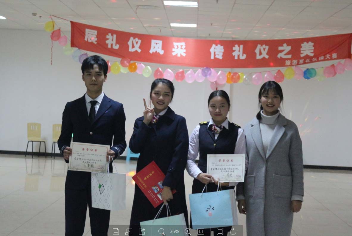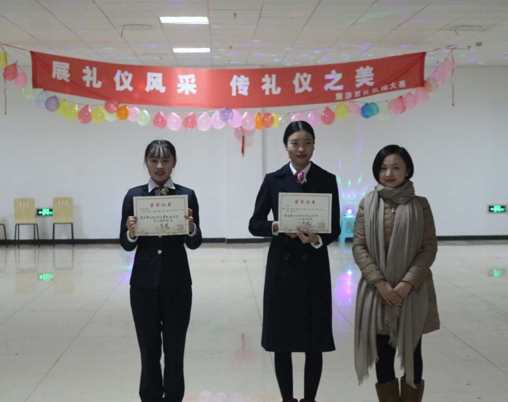 随着音乐响起,比赛正式开始,参赛的同学们服装统一,仪容精致,以自然大方得体的仪态,自信的微笑来迎接比赛。他们分别展示了平时待人接物中的基本动作礼仪,向大家充分的展示了乘务员应有的精神状态和端庄得体的职业礼仪形象,举手投足之间散发着职业的魅力,带给大家美得享受。在比赛中穿插系领带、打丝巾和礼仪竞猜三个互动环节,考验大家的礼仪操作和礼仪知识是否学得扎实,并希望同学们能够将所学的礼仪知识运用到生活中去。最后,由20名大众评审票选出最受观众喜爱奖。比赛结束后鲜老师和韩老师分别对比赛进行了总结和点评,并希望能为旅游系的同学作模范,让旅游系所有的同学来学习,将礼仪之美贯穿到生活之中。 经过激烈的角逐,《三缺一队》荣获一等奖,《巴蜀仪韵队》《伶韵队》获得二等奖,《千雅之礼队》《风韵雅诗队》《奈斯队》获得三等奖,而《伶韵队》受到观众一致喜爱,获得最佳人气奖。 通过此次比赛,让同学们感受到礼仪文明的魅力,进一步培养我们良好的道德品质和文明行为习惯,促进校风学风和校园精神文明建设,让礼仪遍布整个校园! 旅游艺术系宣传部 2017/12/27