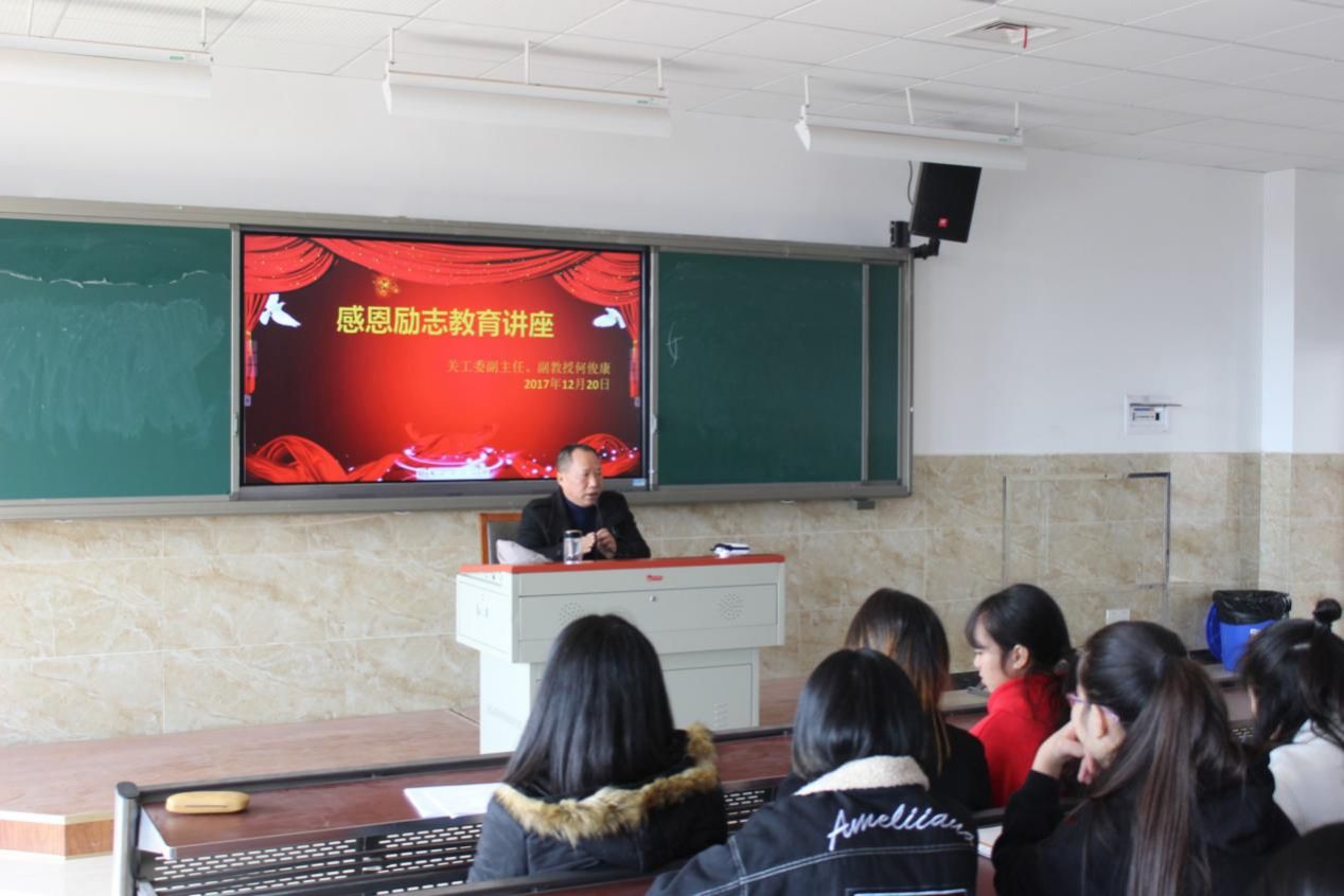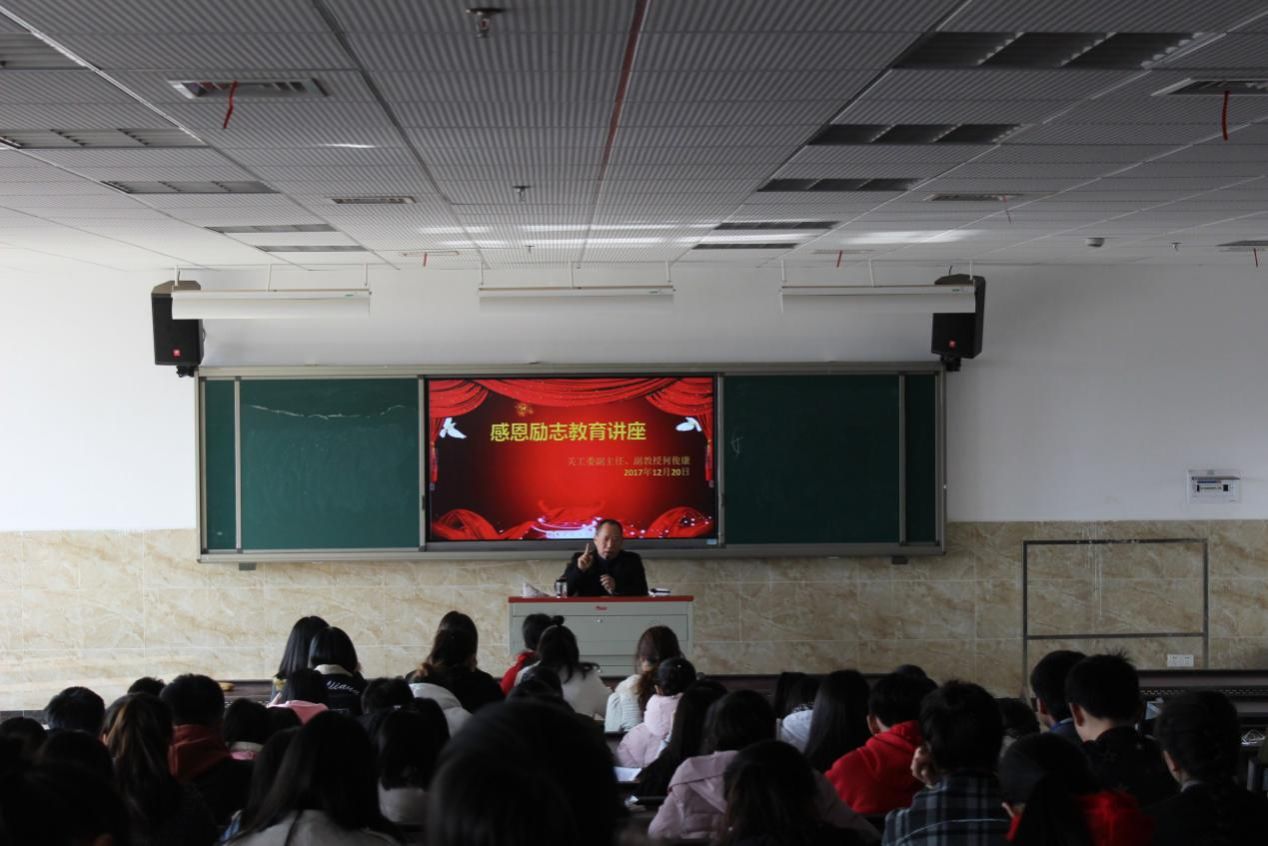 为增强同学们的感恩意识,培育同学们积极向上的学习氛围,旅游艺术系于2017年12月20日下午2:00在教学楼2c101开展了感恩励志教育讲座。本次讲座由关工委副主任、副教授何俊康主讲,旅游艺术系大一大二2017年受资助200余同学参加。