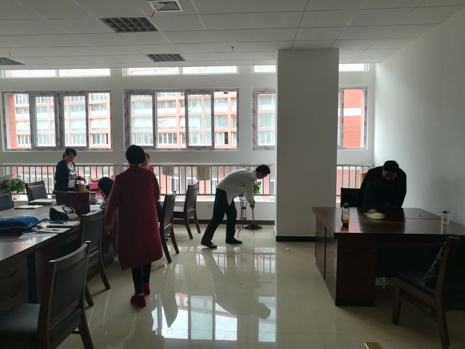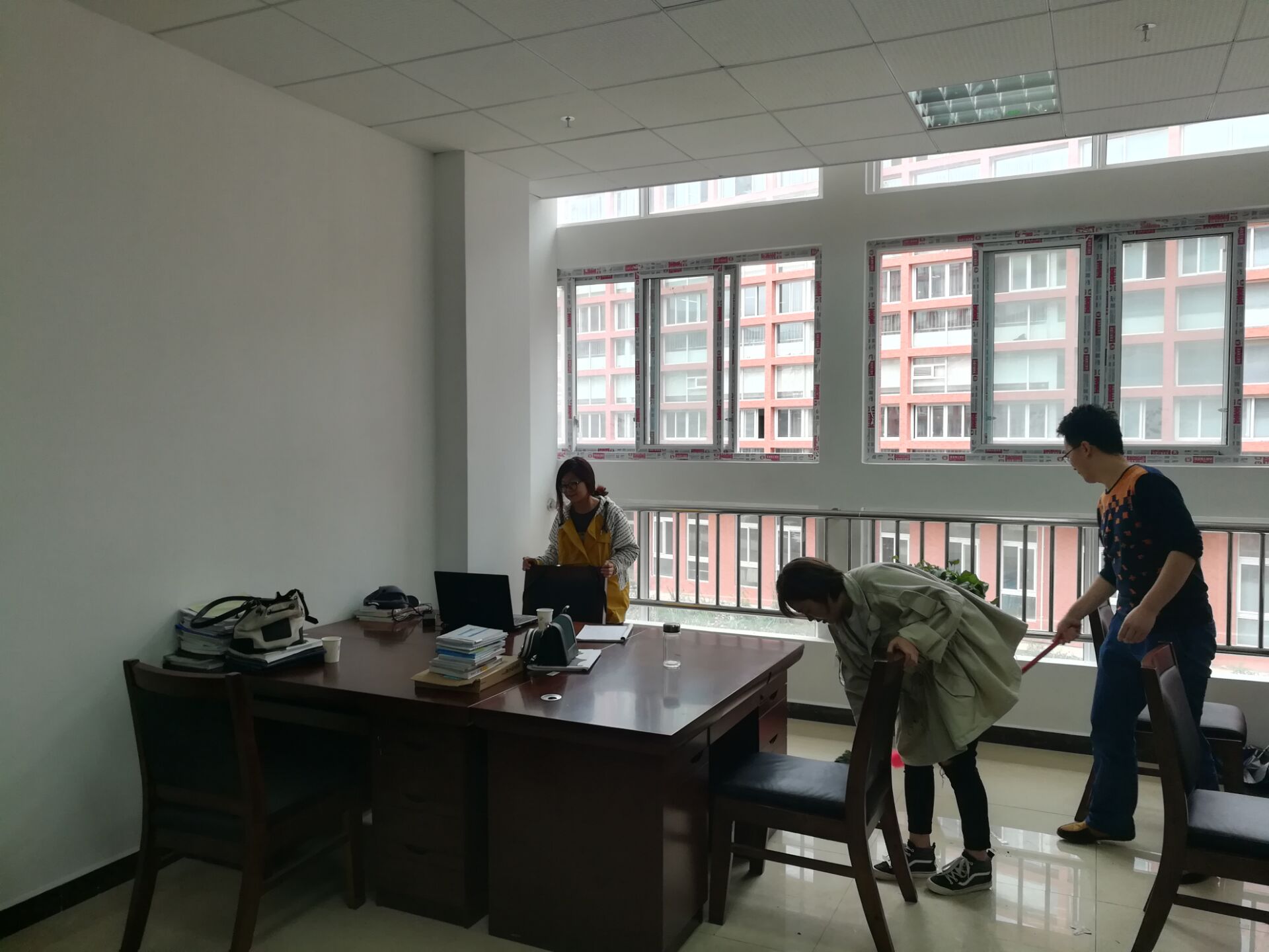 2017年10月12中午,旅游系工会组织了搬入新校区以来的第一次大扫除活动,本次活动每个人都参与其中,对办公区的桌椅、地板、门窗进行了彻底清洁。通过本次有意义的活动,使办公区的环境更加干净整洁,为大家办公带来了愉快的心情。 旅游系工会 2017/10/12