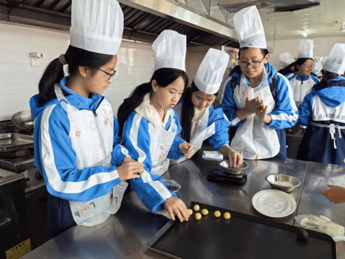 2025年11月4日,来自乐山市沙湾区踏水镇初级中学一年级三班、三年级二班共95名学生参加了我校文化旅游学院烹饪实训中心组织开展的美食体验研学实践活动。本次活动由张雷、马世新老师负责组织,在活动过程中烹饪实训中心胡文才、廖庆才、刘向阳、陈燊四位老师精心演示并讲解了乐山美食豆腐脑、月饼、西点制作的过程,每一位学生在老师们的帮助下亲手体验了各类美食的制作的乐趣,脸上洋溢着成就感,在看、学、做、品的沉浸式体验中,开启了一场兼具味觉享受与文化探索的研学之旅。