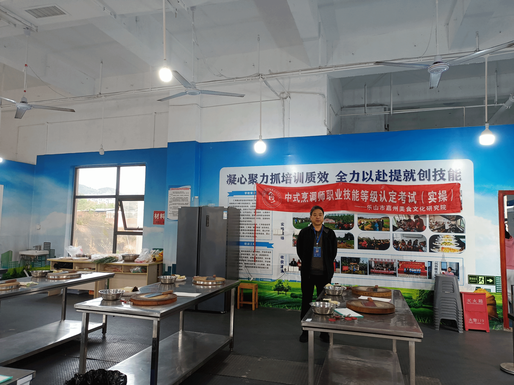 文化旅游学院胡文才老师应嘉州美食文化研究院邀请,于2026年3月30日-31日在眉山市仁寿县腾达职业培训学校为乐山市嘉州美食文化研究院开展的“中式烹调师五级”等级认定工作进行考评。