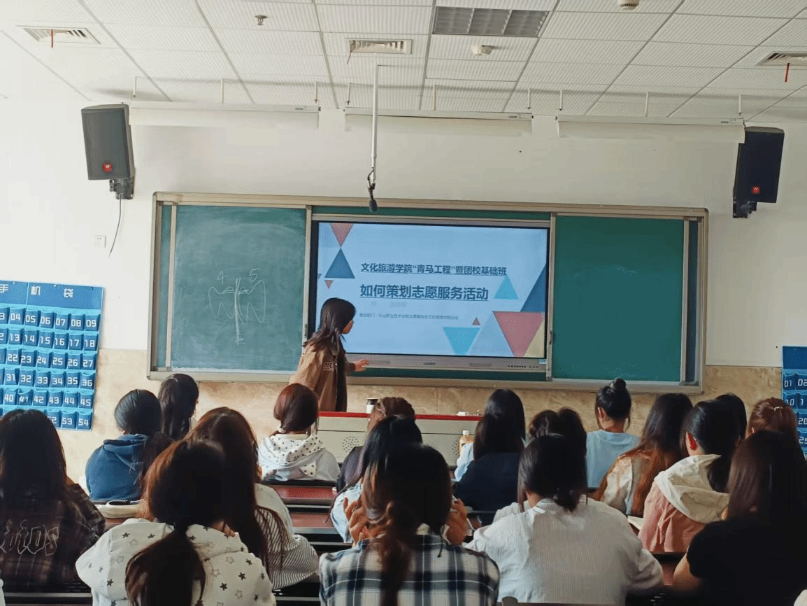 文化旅游学院“青马工程”暨团校基础班于2026年4月15日开展“青马工程暨团校培训”活动。68名同学积极参与,认真学习策划志愿服务活动的相关知识,为同学们后续发展打下坚实基础。
