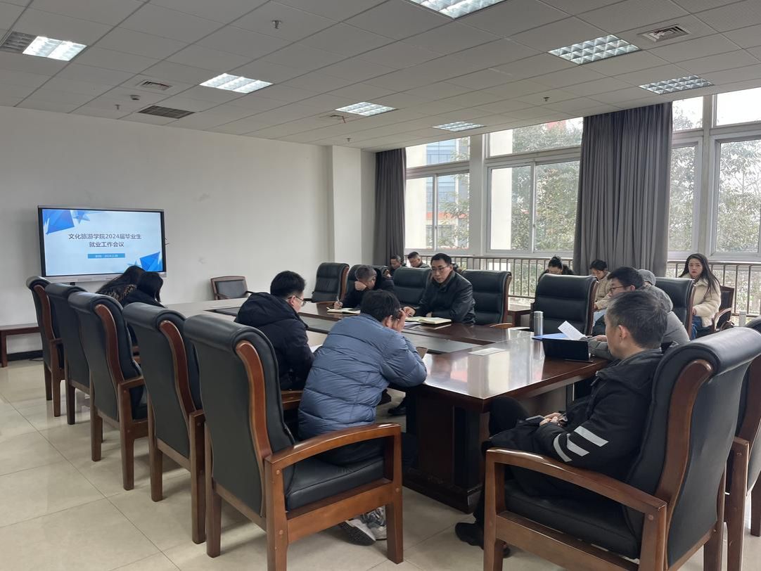 2024年2月28日,文化旅游学院召开了2024届就业工作推进会,会议旨在深入贯彻习近平总书记关于就业工作的重要指示精神,全面落实教育部、人社部等相关部门的决策部署,推动文旅学院2024届毕业生实现高质量充分就业。会议由学院总支书记朱文彬主持,全体教职员工参加。对上一阶段我院2024届毕业生就业工作开展情况进行了小结。并传达了《乐山职业技术学院2024届毕业生就业统计核查工作方案》文件内容。