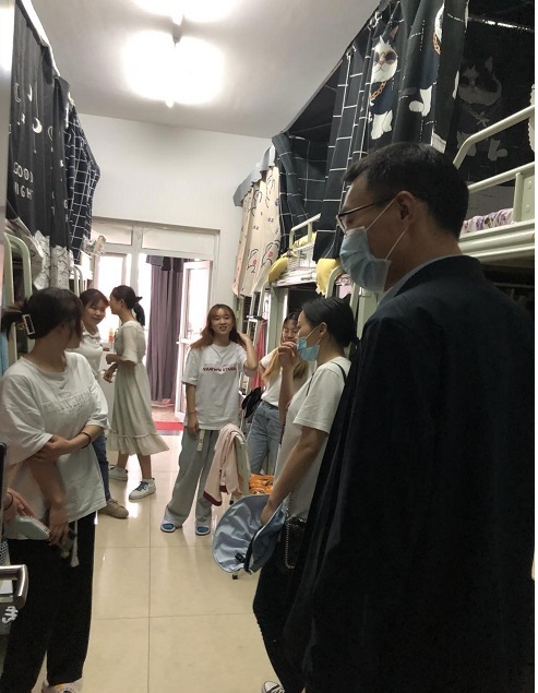 在走访过程中,老师们重点了解和协调解决封校后同学们的思想动态、生活困难、专业学习上遇到的问题,同时查看了宿舍卫生、用电安全、消防安全和防盗安全等方面的情况。杨主任提醒大家做好个人疫情防控,保持良好的生活习惯,勤通风、勤洗手、多搞体育锻炼,要求大家注意用电安全,不将插线板放置床上,不使用违禁和大功率电器,人不在寝室时或晚上睡觉时要关好门窗,关闭电源,并收捡好贵重物品。