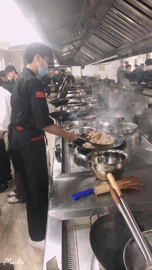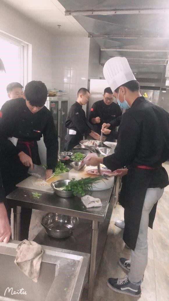 为让同学们在疫情封控期间在学校里感受到快乐和温暖, 普专烹调21-1班在周末(2022年3月26日)开展了班级美食烹饪和分享活动,期间,旅游艺术系党总支书记朱文彬,辅导员吴正勇、周平到活动现场观摩和指导。