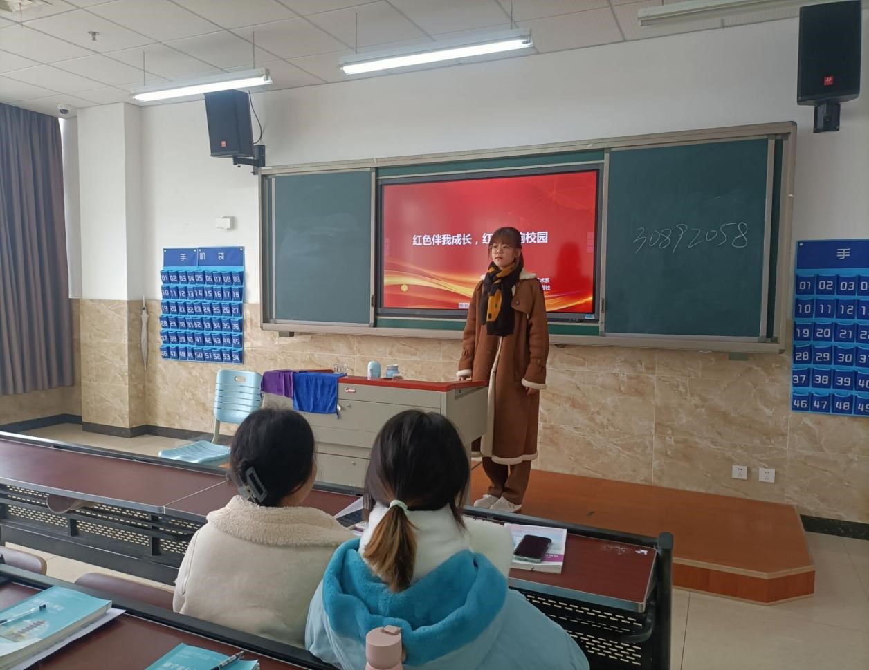 为庆祝中国共产党成立100周年,弘扬红色精神,激励学生奋勇向前,旅游艺术系团委于2021年12月8日在1B309教室开展了“红色伴我成长,红歌唱响校园”合唱活动,旅游艺术系部分同学参加。