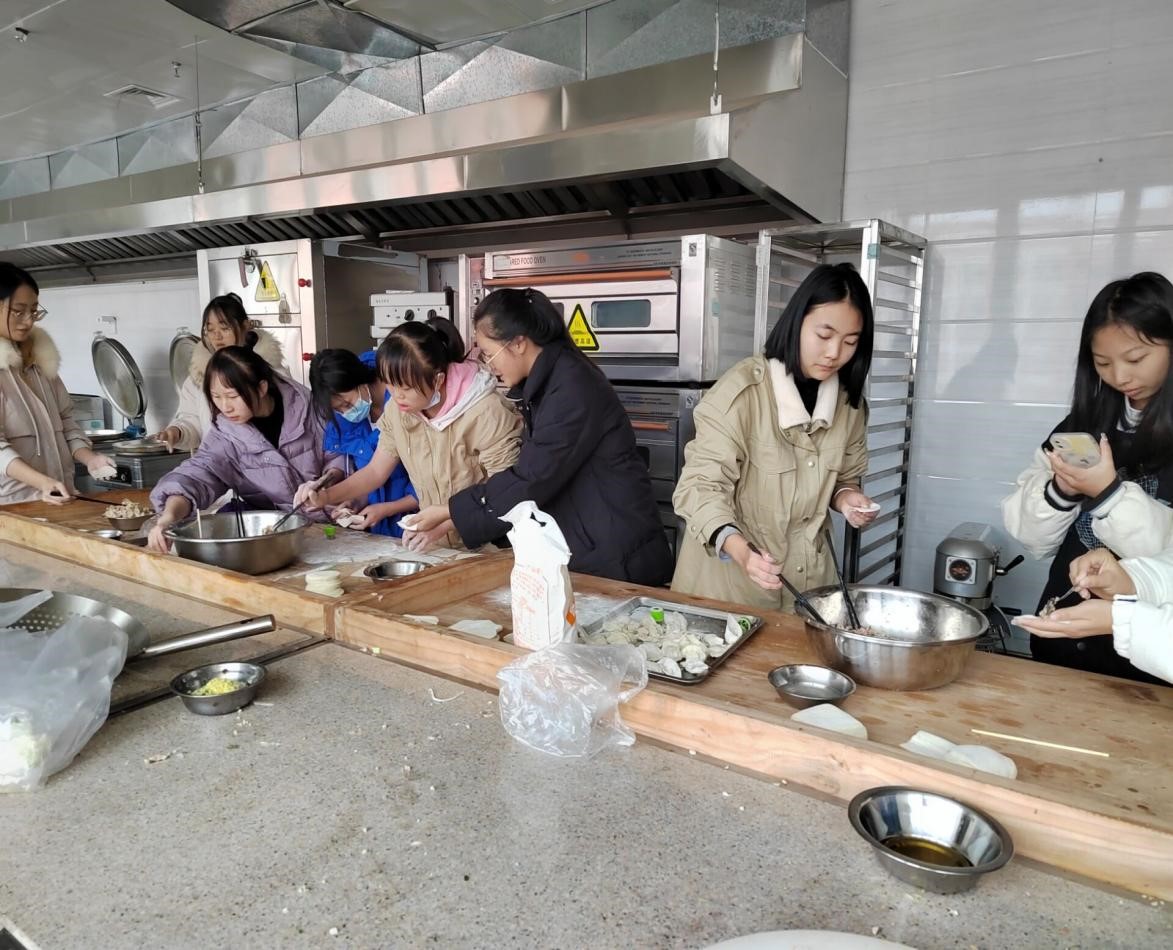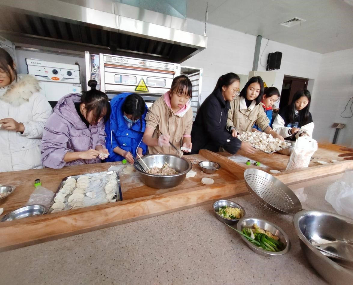 活动当日,同学们从食材准备、和面到擀皮、拌馅等每一项任务工作井然有序地开展。每位同学分工协作,各显本领。准备工作完毕之后,到了包饺子的环节,一盘盘形状各异的饺子在大家的欢声笑语中新鲜出炉。大家一边品尝着美食,一边聊着学业和对家的思念。