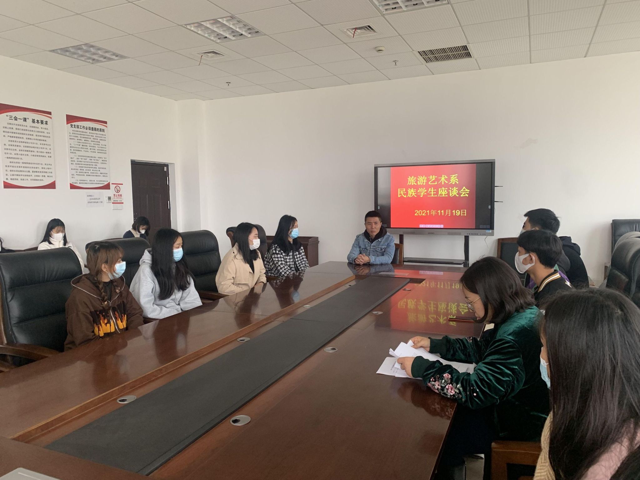 为更进一步关心我系少数民族学生的学习和生活,促进民族学生文化交流,帮助少数民族学生成长成才,11月19日,我系在1号教研楼210会议室召开了少数民族学生座谈会。本次座谈会由副主任彭媛媛主持,系总支专职副书记彭媛媛、学管办张微义老师、我系25名少数民族学生代表参加了本次座谈会。