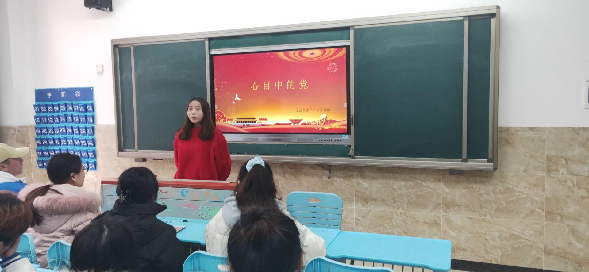 为庆祝中国共产党成立100周年,进一步丰富党史学习教育的形式和内涵,引导我系学生全面回顾百年来中国共产党从诞生到发展壮大的光辉历程、伟大成绩和宝贵经验,旅游艺术系团委于2021年12月1日举办了“我心中的党”主题演讲活动,旅游艺术系部分同学参与。
