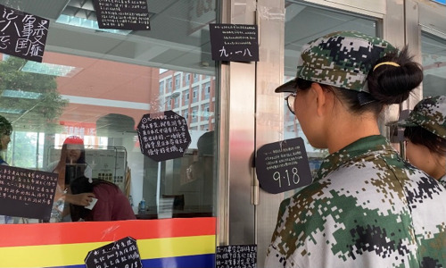活动开展的前一天,旅游艺术系小青团组织众多志愿者提前做好相关历史知识卡片并张贴于青协办公室门口。活动当日,由两位同学组织大家共同学习九一八事变历史,参与活动的同学将所感所想留在便签条上相互交流。