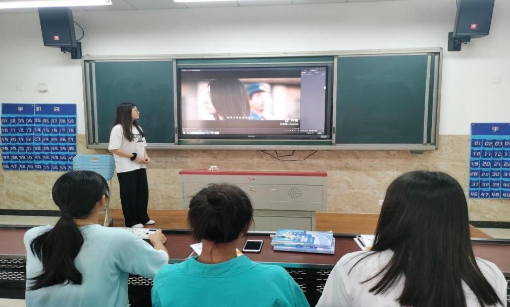 合唱前,首先组织同学们观看了爱国短片《我就是中国》,一段关于祖国发展催人奋进的视频,激发同学们的积极性与自豪感。通过影片观看使同学们深受启发,祖国迅速发展让我们自豪不已,国家希望与民族未来寄予青年,身为青年一代的我们更加要奋发图强。随后,同学们合唱歌曲《我和我的祖国》, 通过歌唱的形式展现出当代大学生对祖国母亲的热爱,唤醒同学们的红色记忆,用真挚的歌声回顾党的革命时期的峥嵘岁月。