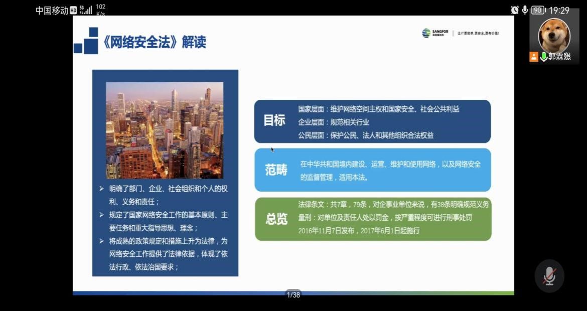 为加强同学们的网络安全意识,深刻学习习近平总书记提出的网络安全思想,进一步推进校园网络安全工作,旅游艺术系团委于10月18日晚19点组织无课班级参加乐职院网络安全主题线上讲座。