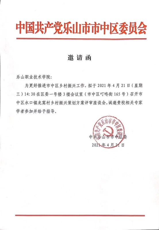 2020年4月21日,受乐山市市中区委办邀请,我院旅游艺术系黎芳、方美两位老师参加了市中区水口镇龙窝村乡村振兴策划方案评审会。评审分为查阅材料、听取汇报、专家评议三个环节。