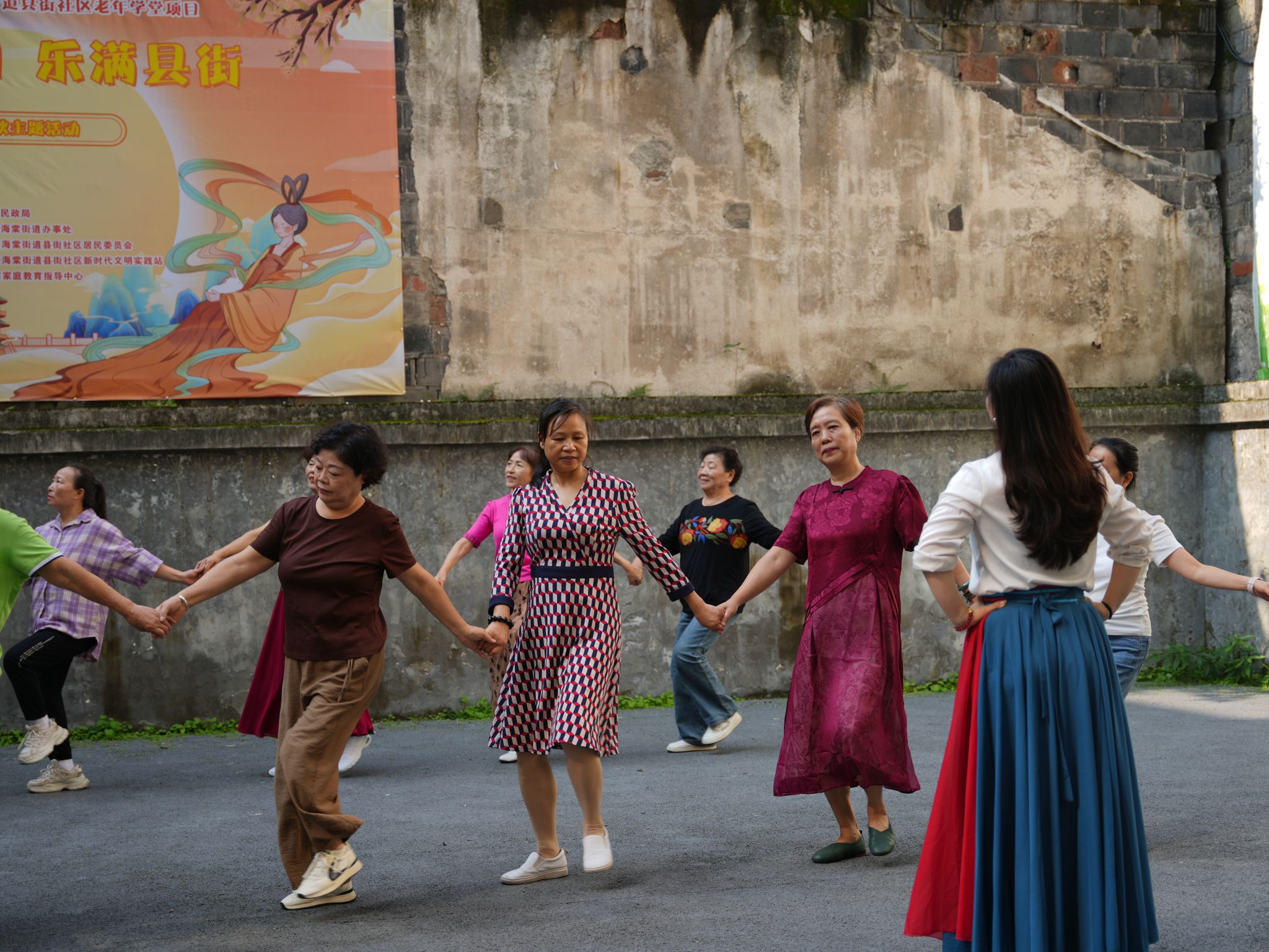 在教学环节,她耐心分解动作,细致示范指导。从基本手位、脚位到连贯舞步,她一遍遍带领老人们练习,并不时给予鼓励。学员们学习热情高涨,跟着音乐的节拍,认真模仿,逐步掌握了舞蹈的基本要领。活动现场气氛热烈,欢声笑语不断,充满了活力和温馨。许多老人表示,这样的活动不仅锻炼了身体,愉悦了心情,更让他们感受到了来自高校的关怀和社会的温暖,仿佛回到了青春年华。