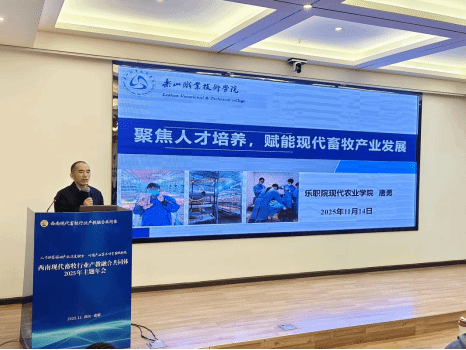 2025年11月14日,乐山职业技术学院现代农业学院副院长唐勇应邀出席成都农业科技职业学院承办的西南现代畜牧行业产教融合共同体2025年主题年会。