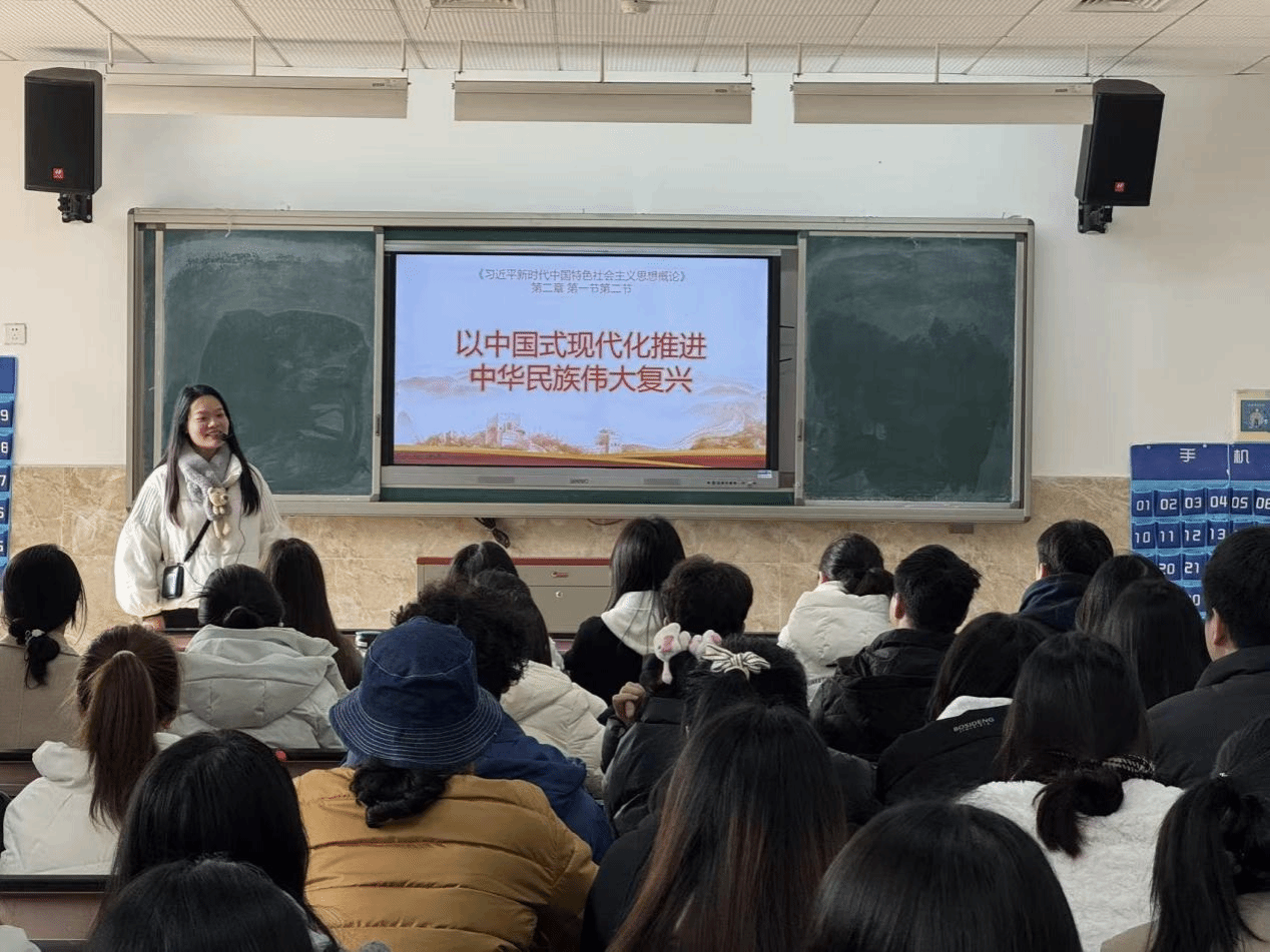 课堂上,吴雨沙跳出传统理论宣讲的刻板框架,以“历史文明树”为喻串联古今:从夏商周文明基因的萌芽,到近代磨难中顽强生长的坚韧,再到新时代中国式现代化的丰硕成果,让历史脉络脱离冰冷的年份与事件,变得鲜活可感。她还巧妙结合生活案例,将改革开放初期南方小镇集市的黑白影像,与如今电商直播间的热闹场景并置,用“爷爷奶奶辈的凭票供应,和现在大家指尖下单全球”的通俗表达,为中国式现代化注入生动注解,轻松诙谐的讲述让理论知识瞬间“活”了起来。