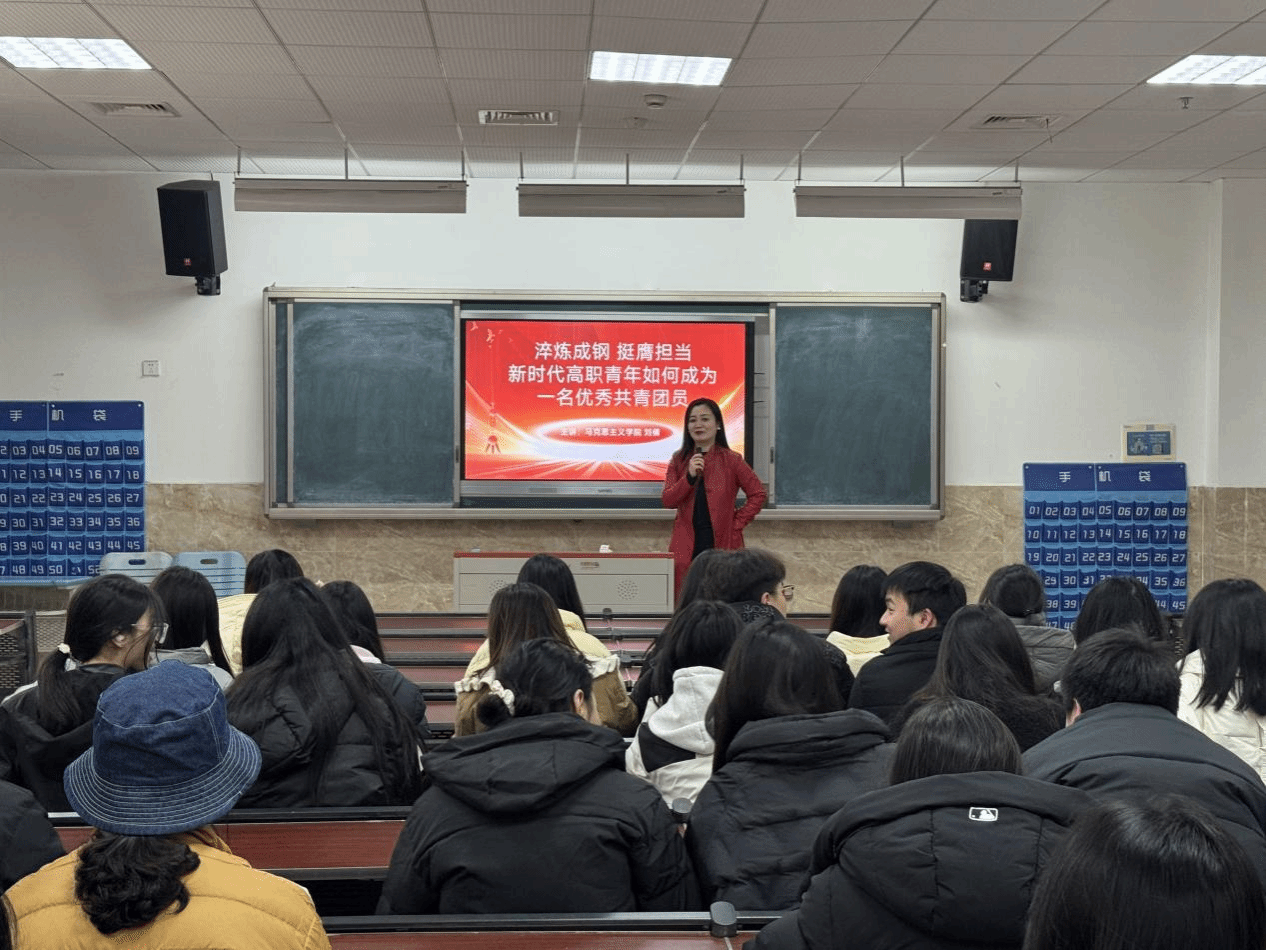 2025年12月19日下午,我校马克思主义学院副院长刘倩以“淬炼成钢 挺膺担当——新时代高职青年如何成为一名优秀共青团员”为主题,为学员进行授课。
