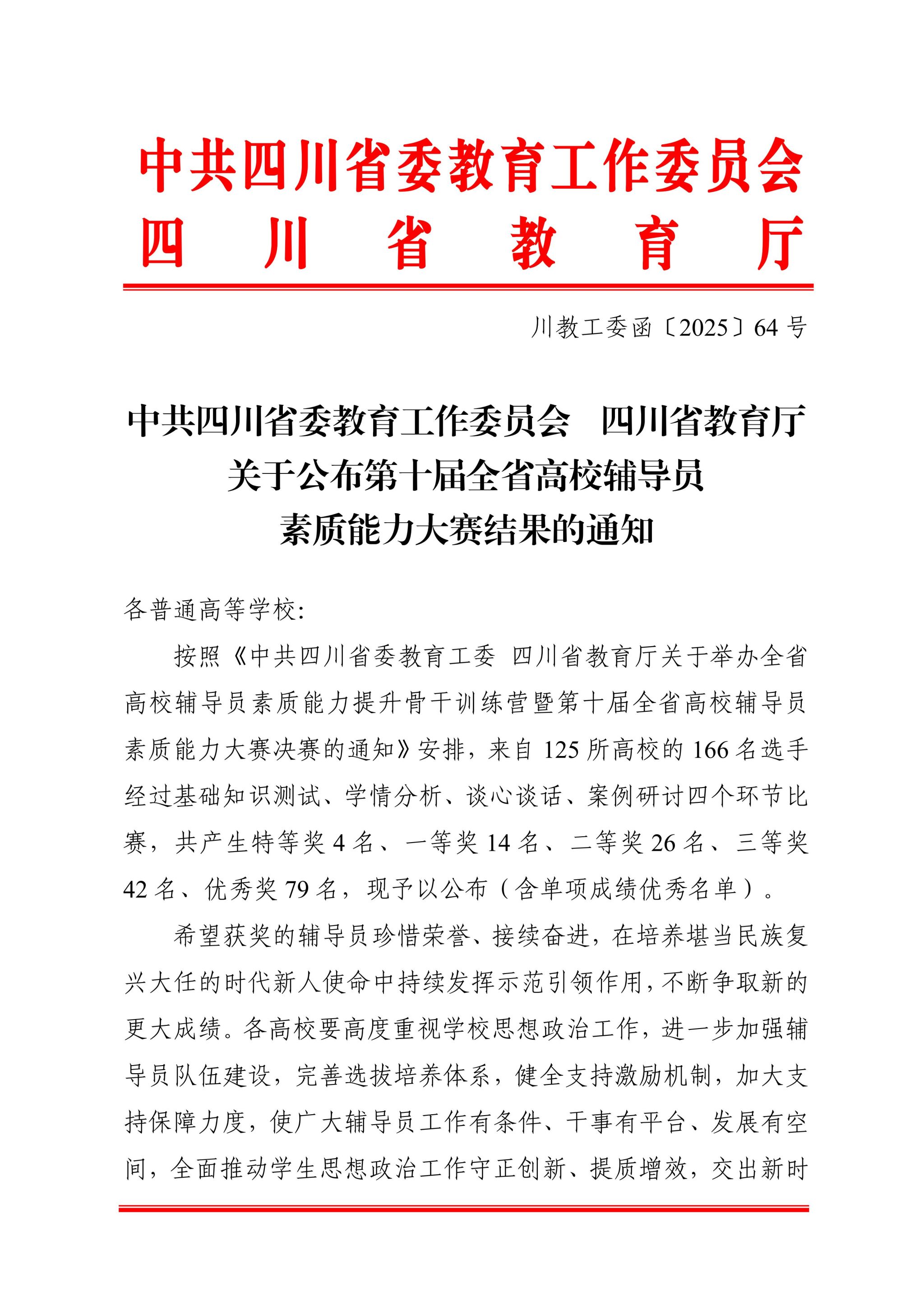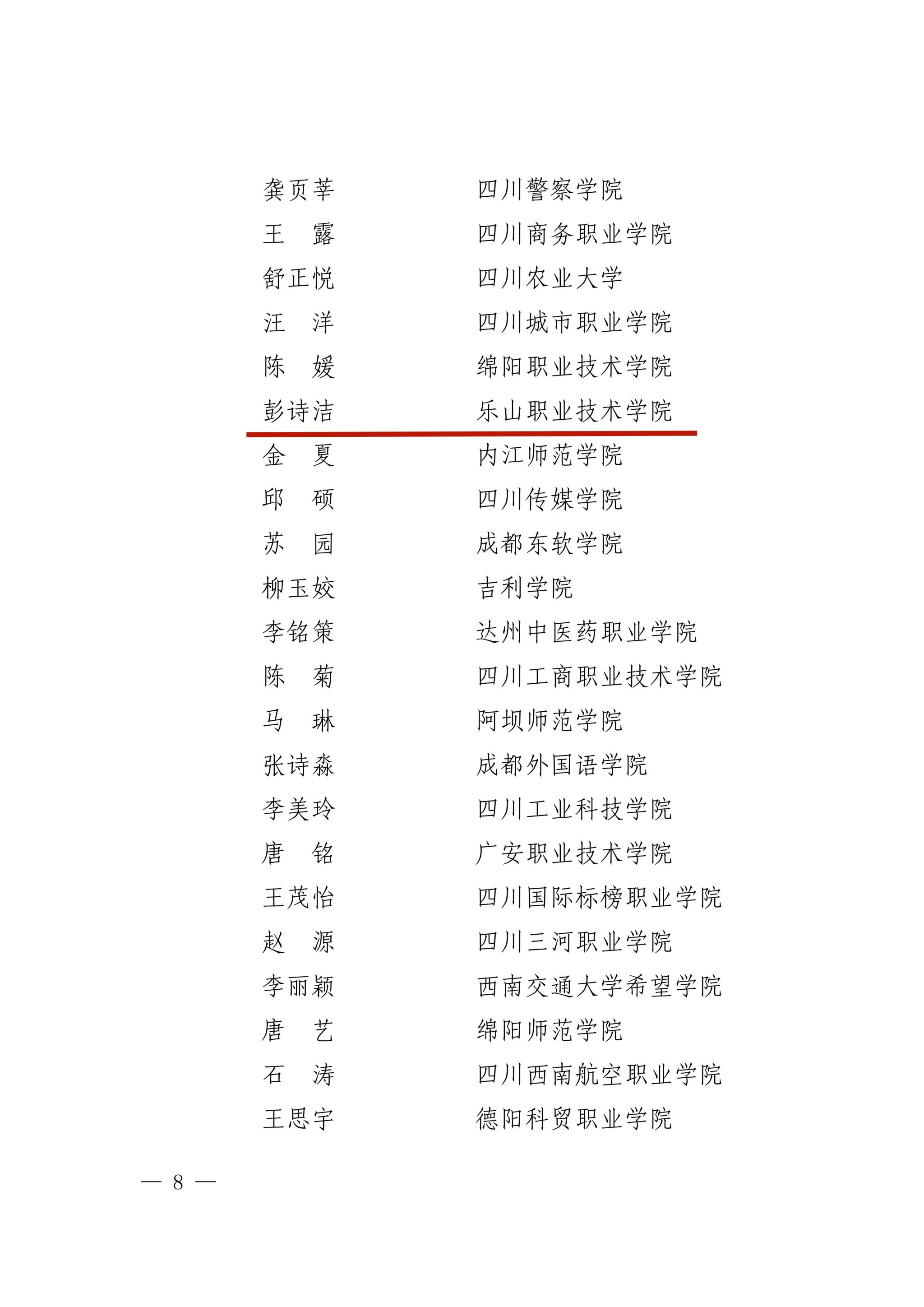 近日,第十届四川省高校辅导员素质能力大赛决赛在西华大学圆满落幕。本次大赛由中共四川省委教育工委、四川省教育厅主办,吸引了全省百余所高校的优秀辅导员参与。乐山职业技术学院选送的辅导员彭诗洁老师,凭借其扎实的日常积累和稳定的临场发挥,最终荣获大赛优秀奖。