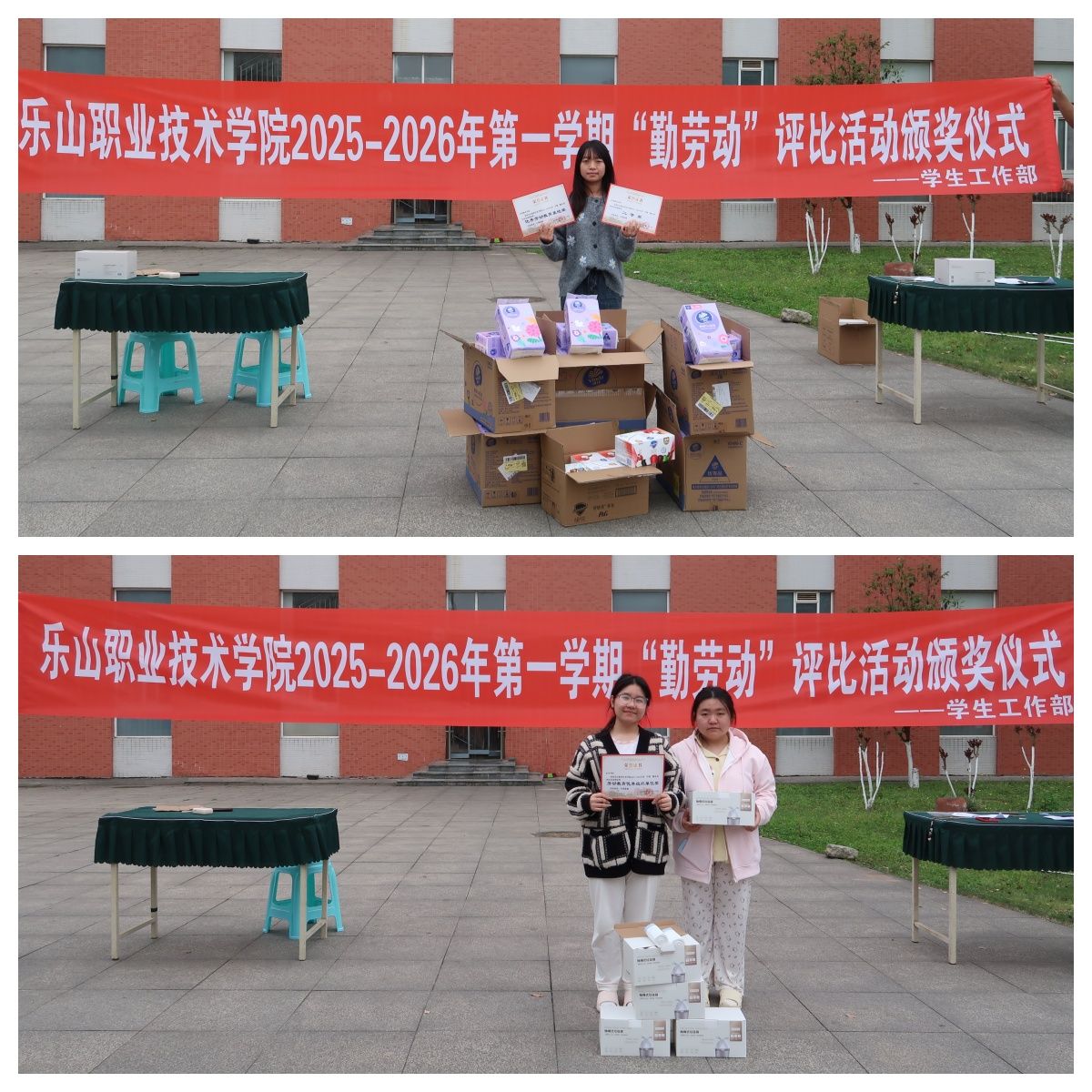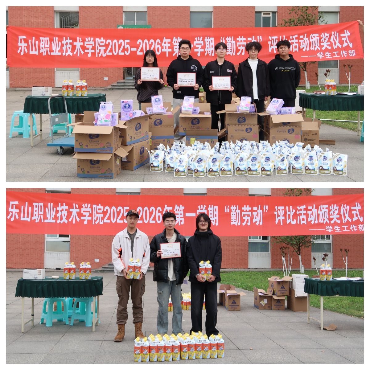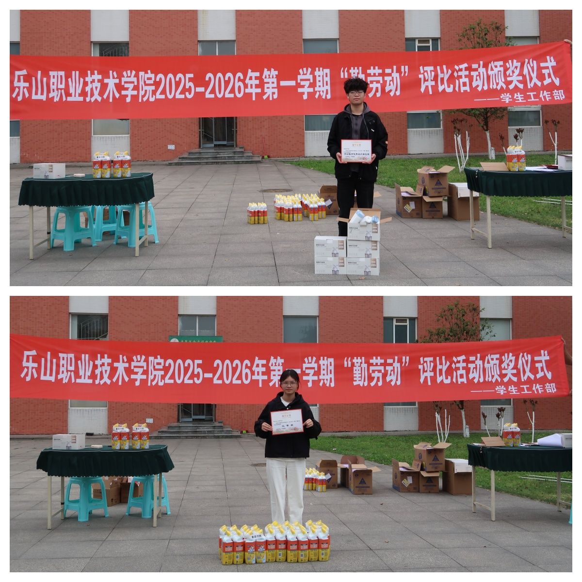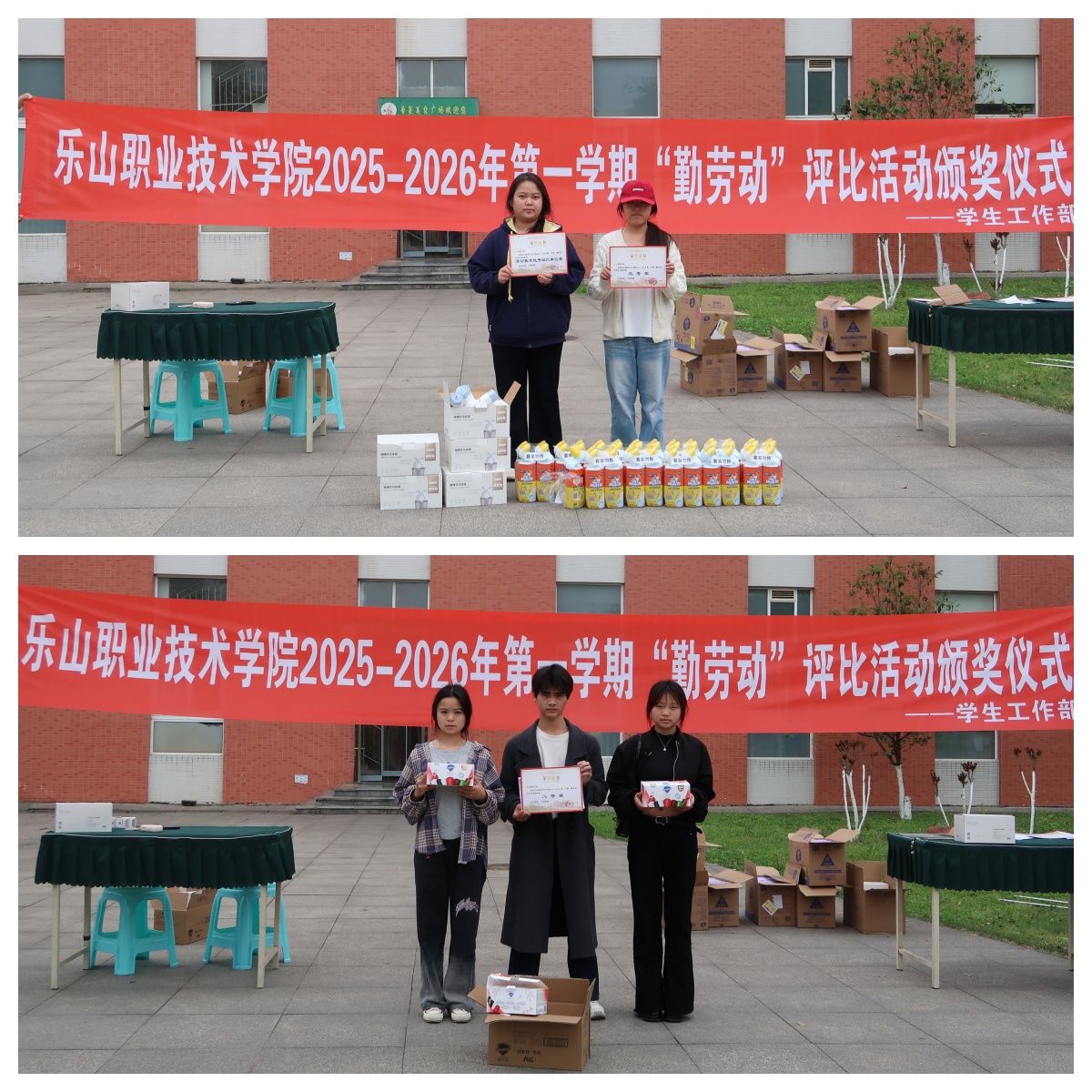 为表彰先进、树立榜样,推动劳动教育成果落地,2026年3月27日下午,我校生活部依托“一站式”学生社区,举行“勤劳动”评比活动颁奖仪式暨奖品集中发放仪式。本次活动依据《乐山职业技术学院2025-2026年第一学期“勤劳动”评比活动方案》,对在“劳动教育基地建设”与“寝室卫生文明”两大板块中表现突出的集体进行表彰。