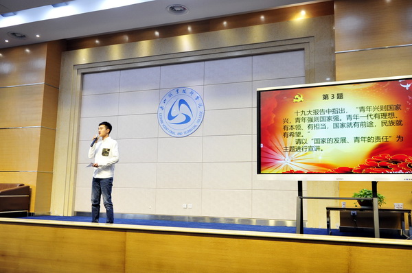 此次大赛为第五届辅导员素质能力大赛学院决赛,自系(部)初赛胜出的8位辅导员选手同台竞技。决赛分为两个环节,第一个环节为“政策宣讲”,主要考察辅导员对马克思主义理论、习近平新时代中国特色社会主义思想、党的十九大精神等的学习宣传阐释能力,以及对大学生开展理想信念教育、中国特色社会主义和中国梦宣传教育、社会主义核心价值观教育过程中的理论宣传阐释能力。第二个环节为“谈心谈话情景再现”,主要考察辅导员对相关理论政策的了解把握及对学生的教育引导能力,根据题目要求,以情景再现的方式开展谈心谈话;全方位地展示了辅导员的个人素养、知识储备和专业技能。