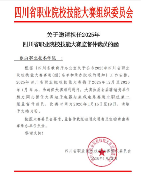 1月16日至19日,2025年四川省职业院校技能大赛“电子电器与集成电路”赛项(中职一组)在宜宾市南溪职业技术学校举行。我校教师杨力受大赛组委会委派,赴宜宾担任该赛项监督仲裁员。