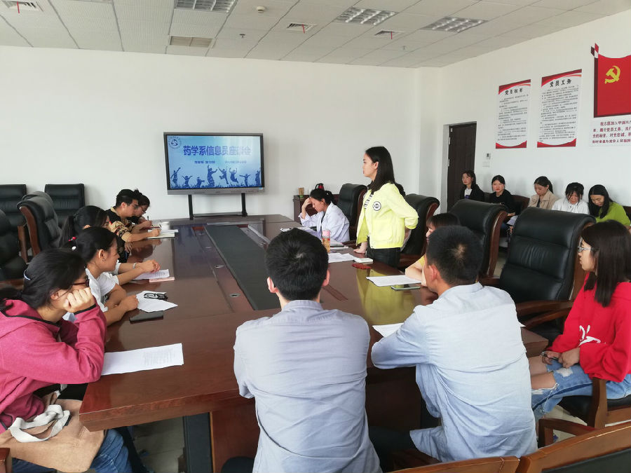 2019年4月29日中午13:00,药学系学习部组织各班学习委员在2号教研楼201会议室召开了信息员座谈会。药学系副主任黄泓轲,周莉江老师参加了此次会议,并由黄主任担任本次会议主持人。