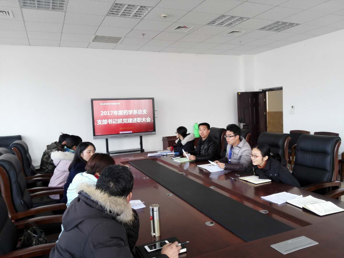 首先,由封家福同志宣读学院文件,介绍了总支支部书记抓党建述职考核方法。随后,药学系教工一支部书记高燕同志、教工二支部书记李静华同志对2017年度党建工作进行述职报告。