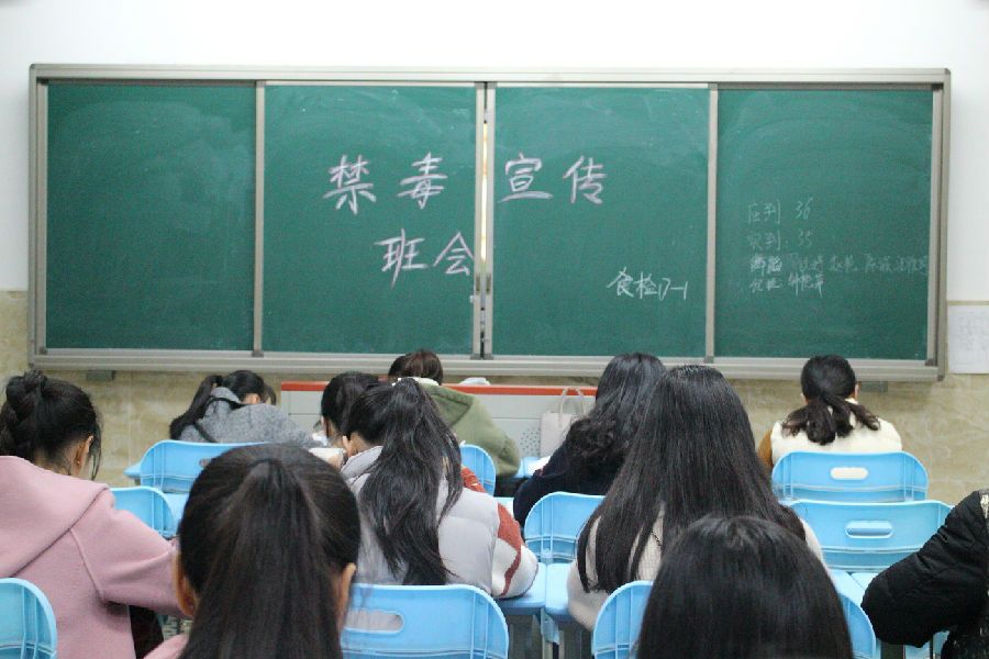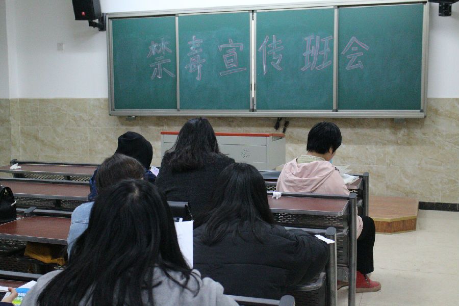 为了加强青少年对毒品的认知,11月21日晚上7点,药学系各班在新校区教学楼开展禁毒宣传活动。