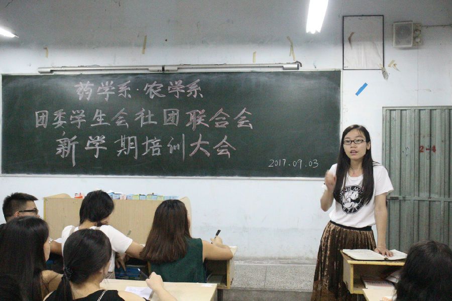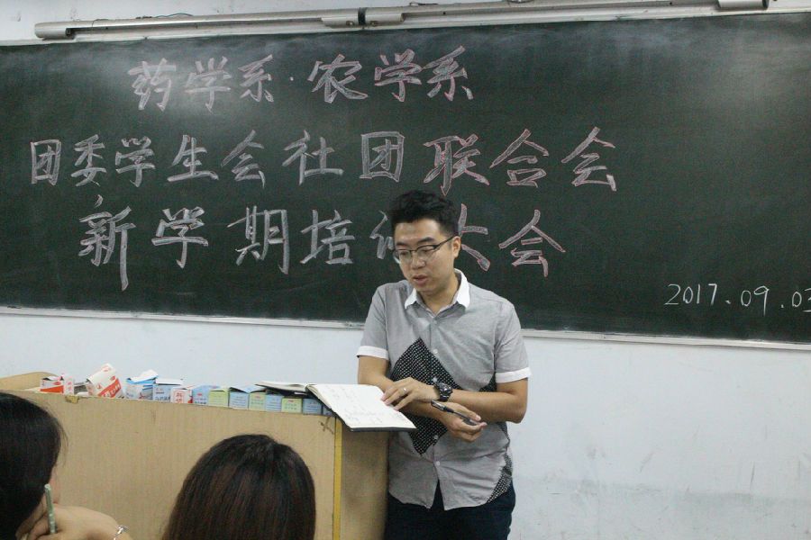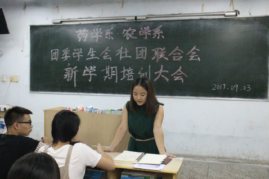 为促进工作的开展,9月3日,在教学楼2-4教室开展新学期培训大会,药学系分管学生副主任黄泓轲、药学系团委干事初丽媛以及团委学生会各部门干部、社团联合会各社团干部参加此次大会。