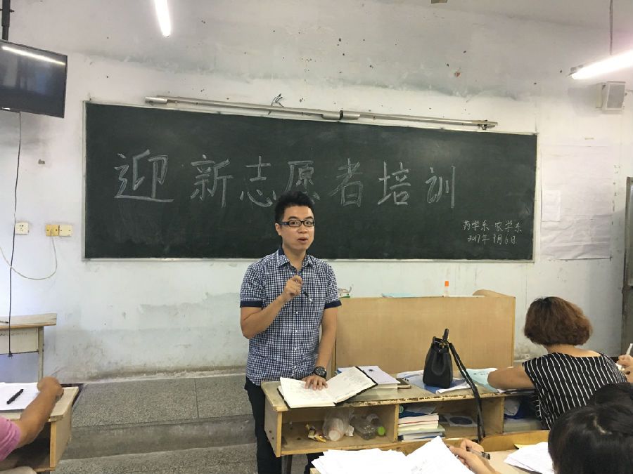 9月6日下午4点,在白塔街校区教学楼2-6教室召开迎新志愿者培训会,药学系分管学生副主任黄泓轲、药学系团委干事初丽媛以及药学系辅导员和招新志愿者参加此次培训会。