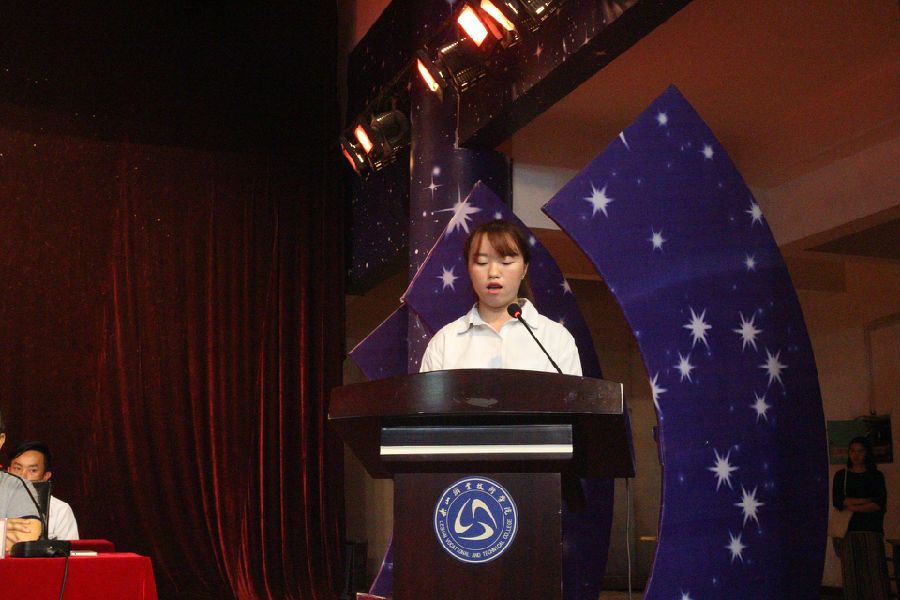 新生代表凌婷希望同学们要尽快适应新的大学生活,树立目标,尊师重道,坚持不懈,严于律己,规范意识。