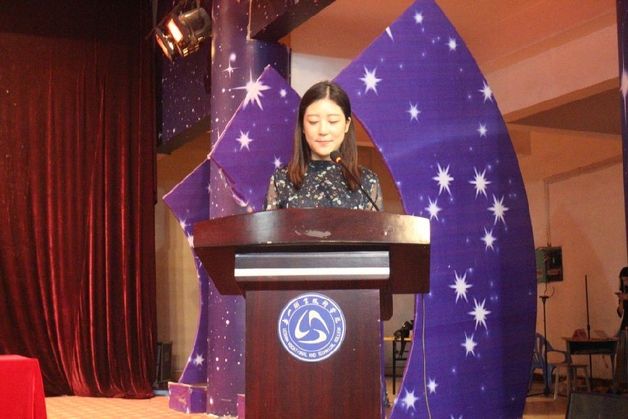留学生代表青松向同学们分享了在学校一年之中的收获和经验,希望大家能够有恒心,认真的做好每一件事情。