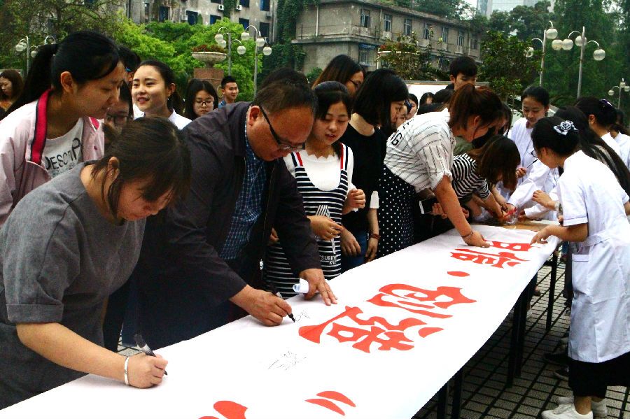 活动开始由马纯洁老师进行整队。随后,由药学系党总支书记兼代理主任张知贵老师老师向同学们简要介绍了“5.25心理健康月”,向同学们讲解了心理健康的重要性。紧接着,学生代表心理部部长邹梅宣读5.25心理健康月活动倡议书,并表示会同同学们一起积极面对生活。活动中郑书记呼吁同学们重视心理健康问题。最后张老师宣布心理健康教育月活动的开始并带领同学们在横幅上签字,同学们都积极参与。