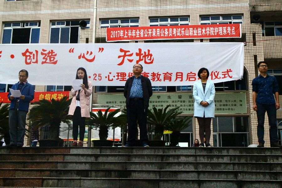 为了加强对大学生心理健康问题的关注,营造健康和谐发展的校园氛围,2017年5月5日上午10点55分在白塔街校区风雨广场开展了“自信·创造‘心’世界”5.25心理健康教育月启动活动,活动由药学系党总支书记兼代理主任张知贵主持、医护系党总支部书记郑平、药学系分管学生副主任杨莉、心理部指导老师柴晓苇和纪律干事马纯洁老师以及各班班长、心理委员和同学代表出席这次活动。