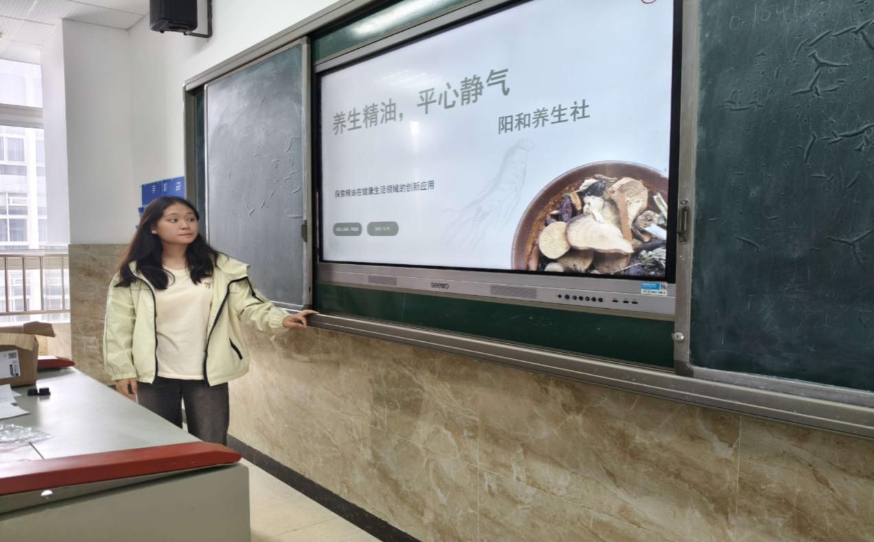 为丰富同学们的养生知识、提升动手能力,2025年10月29日下午,生物医药学院阳和养生社在教学楼开展“养生精油,平心静气”主题活动,此次活动由阳和养生社成员参加。