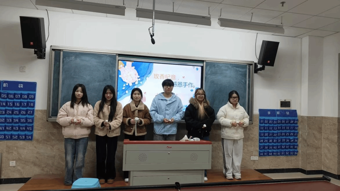 为丰富同学们的课余生活,激发大家的艺术创作灵感,2025年11月26日生物医药学院纪检部在教学楼开展“玫香纪意,感恩手作”体验活动,此次活动共有生物医药学院30名同学参与。