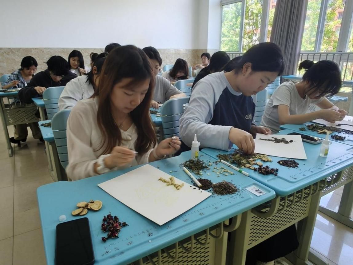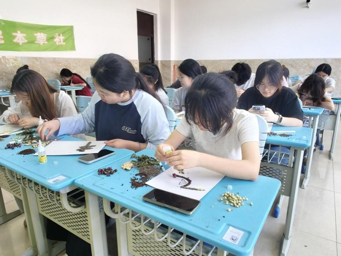 为传播基础中医药文化知识,认识常见可用于手工创作的中草药,提升对中华传统医药文化的认知与兴趣,同时传承福文化、祈福文化等中华优秀民俗,以手作“福”字传递平安、健康、顺遂的美好祝愿,增强文化认同感与幸福感,2026年4月17日,本草社与若水墨韵书画社联合开展了“春深逢谷雨,药美绘新福”主题活动。本次活动共有20名社员参与。