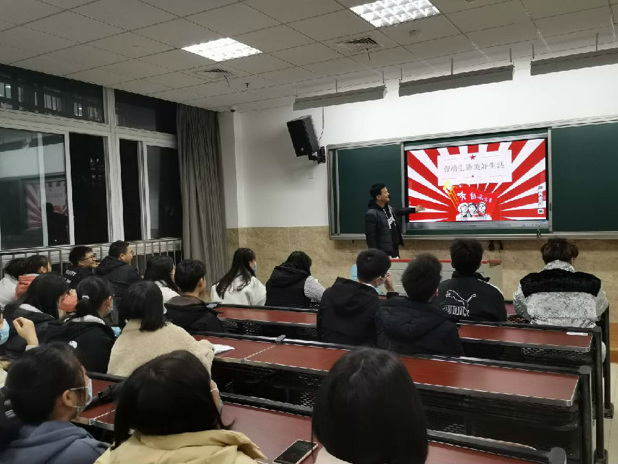 为了让同学知道劳动创造美好的重要性,2021年1月3日星期日下午7:00-7:30,药学系组织各班同学开展由“劳动创造美好生活”的主题班会,由辅导员担任主讲。