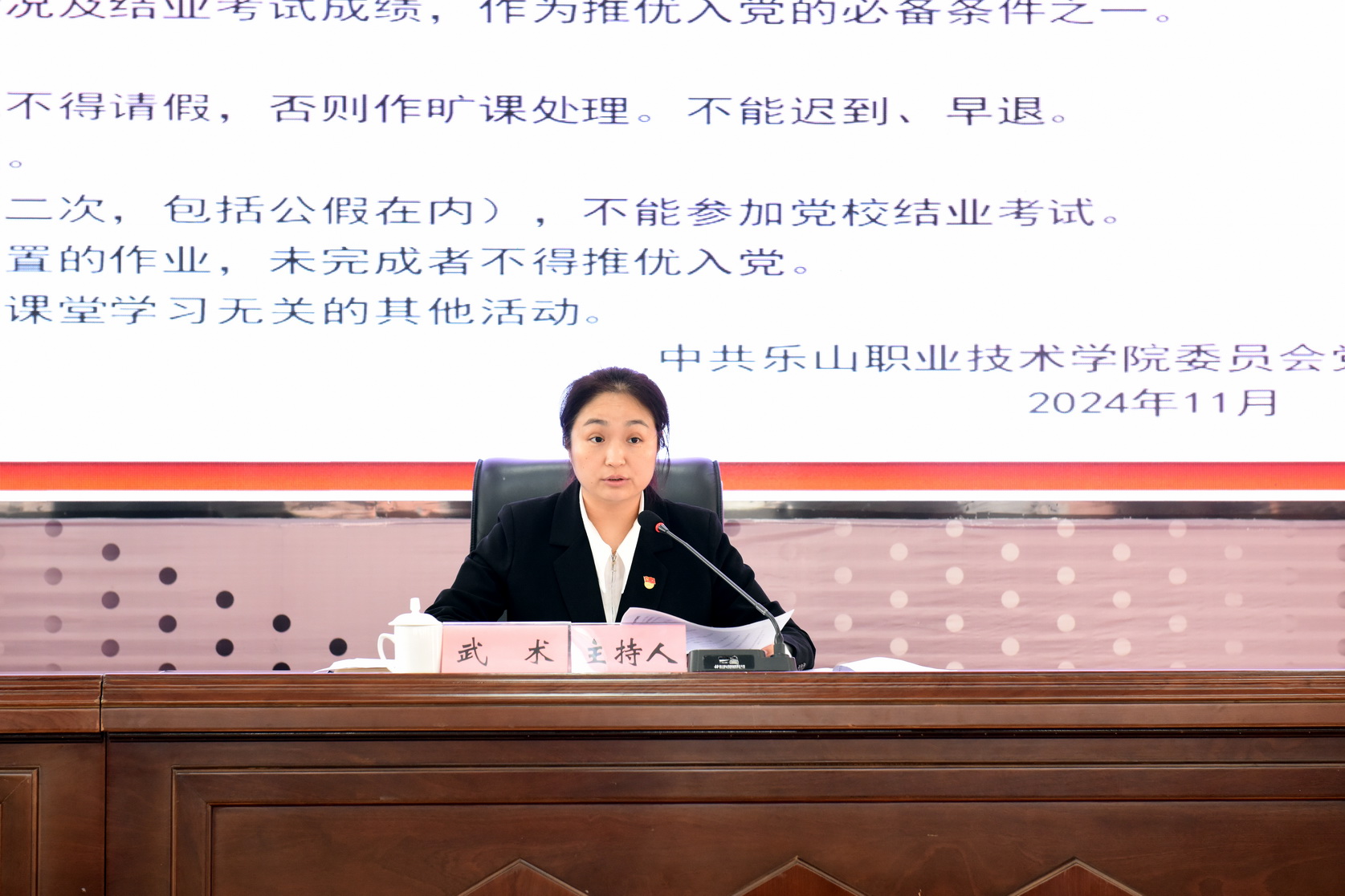 会上,武术宣读了《中共乐山职业技术学院党校学员管理制度》,要求全体学员认真领会并遵守管理制度,共同维护良好的学习氛围。